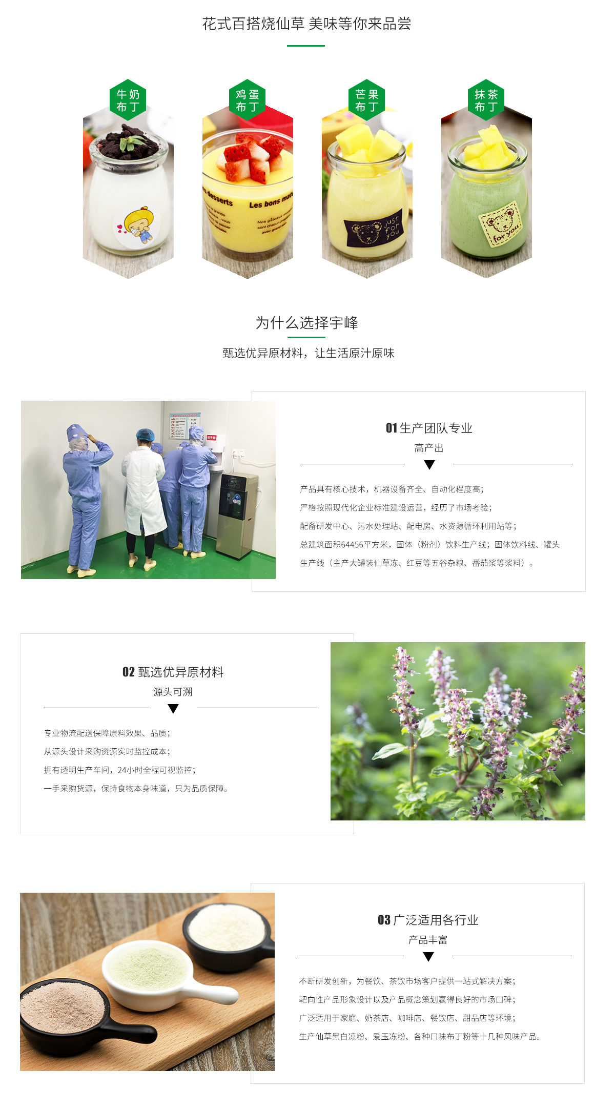 宇峰(滁州)食品有限公司-官方網(wǎng)站-宇峰(滁州)食品有限公司(以下簡(jiǎn)稱(chēng)“滁州公司”),是農(nóng)業(yè)產(chǎn)業(yè)化國(guó)家重點(diǎn)龍頭企業(yè)--廣西宇峰保健食品有限公司的控股公司,成立于2015年1月,注冊(cè)資本5000萬(wàn)元,法人代表王宇峰,是一家“產(chǎn)、銷(xiāo)、貿(mào)”為一體的民營(yíng)企業(yè)。 滁州公司占地面積53329平方米(80畝,自購(gòu)),總建筑面積64456平方米,計(jì)劃總投資32000萬(wàn)元。生產(chǎn)以仙草為核心原料并具有臺(tái)灣元素的“宇峰...