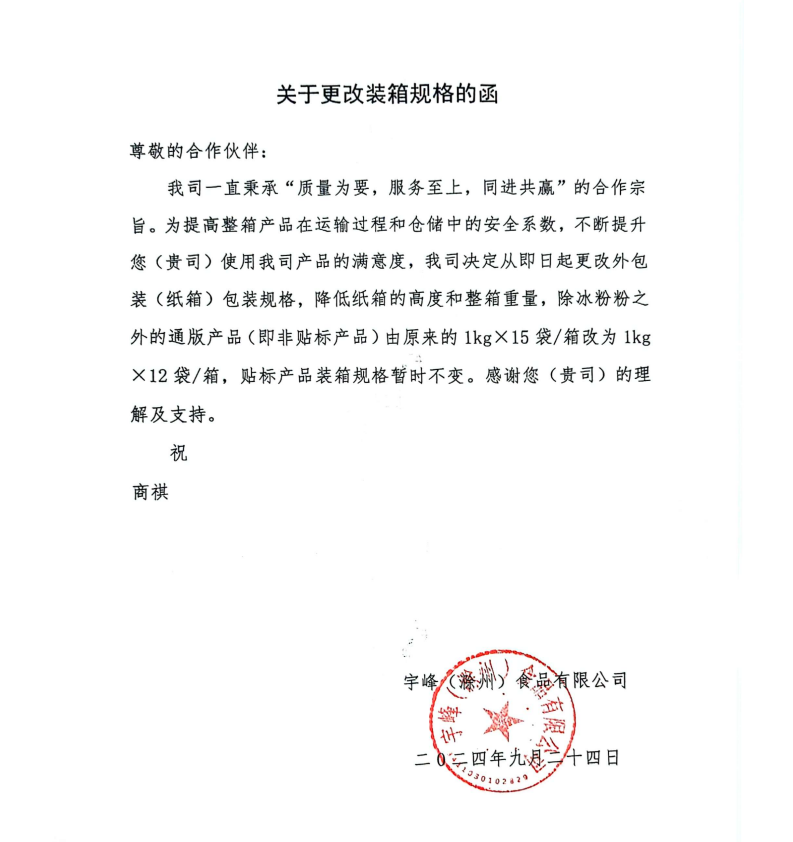 關(guān)于更改裝箱規(guī)格的函